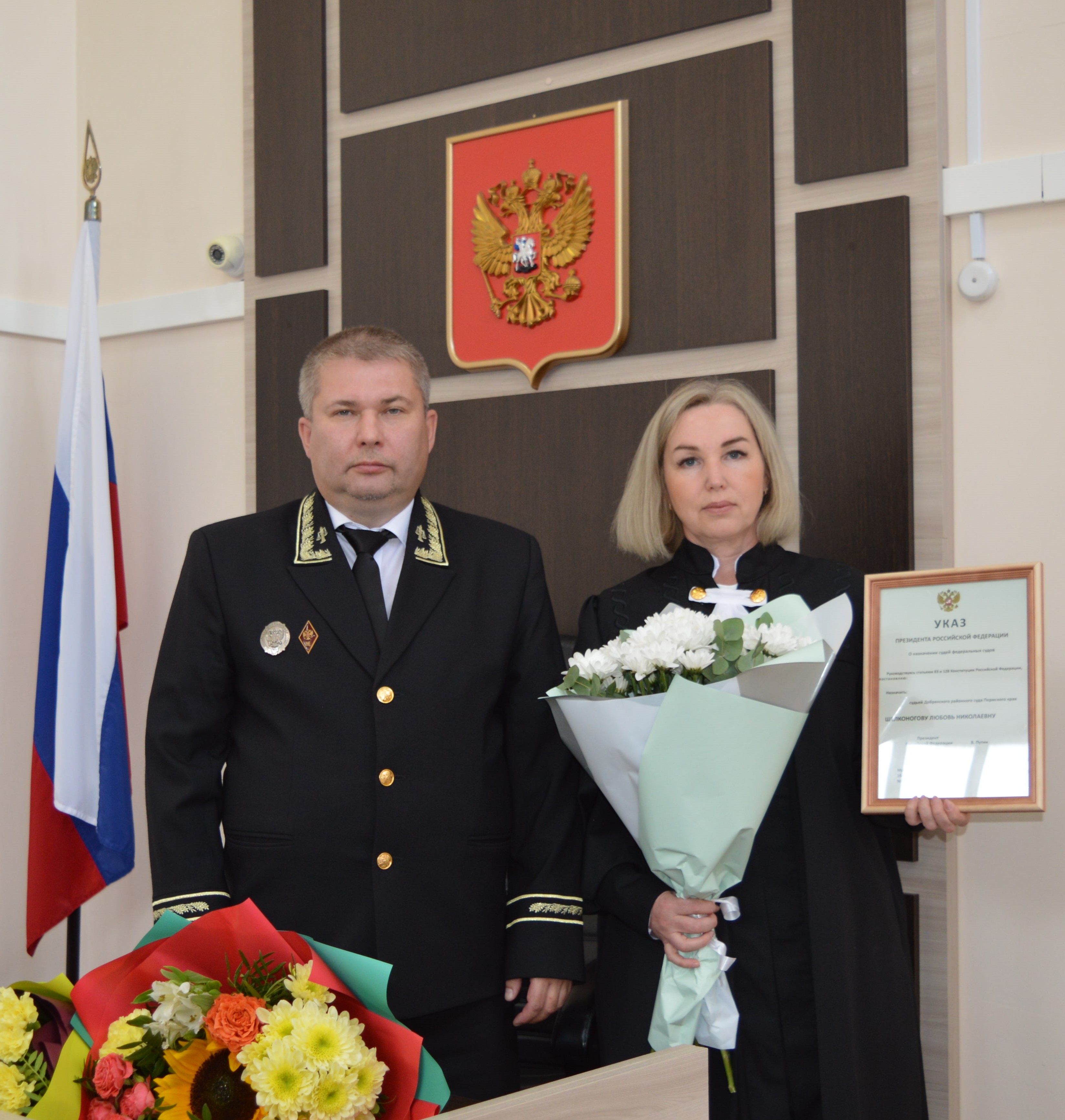 Сегодня в Добрянском районном суде Пермского края представили новую судью Щелконогову Любовь Николаевну. На мероприятии присутствовали представители органов власти и коллеги. Гости поздравили Любовь Николаевну с назначением и пожелали сил и успехов в работе. Председатель суда Неволин Владимир Викторович отметил, что назначение Любовь Николаевны – это признание ее профессионализма и доверия к ней. В ответном слове Любовь Николаевна поблагодарила коллег и гостей за поддержку и подчеркнула, что будет строго соблюдать закон. Трудовую деятельность в судебной системе Любовь Николаевна начала с 2005 года, работала специалистом, главным специалистом, секретарем судебного заседания. До назначения на должность судьи, Любовь Николаевна работала помощником судьи в Суксунском районном суде Пермского края. Любовь Николаевна назначена на должность судьи Добрянского районного суда Пермского края Указом Президента Российской Федерации №565 от 16 августа 2025 года и дополнит гражданскую коллегию суда.