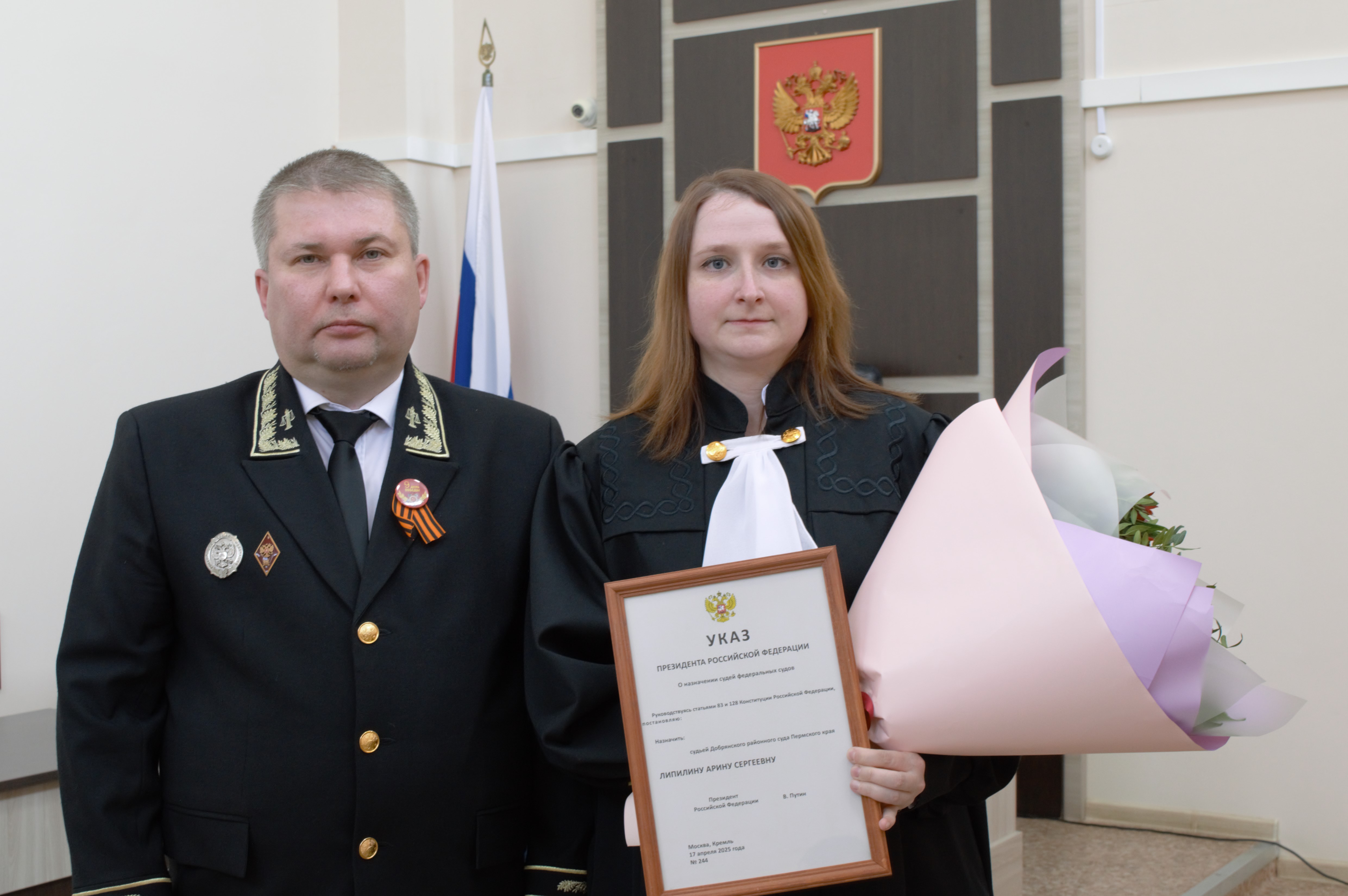Указом Президента Российской Федерации №244 от 17 апреля 2025 года Липилина Арина Сергеевна назначена на должность судьи Добрянского районного суда Пермского края. 23 апреля 2025 года в Добрянском районном суде Пермского края состоялось торжественная церемония вступления в должность вновь назначенного судьи. Мероприятие прошло в официальной обстановке, подчеркивающей значимость момента. Судья торжественно произнесла присягу, подтвердив свою готовность исполнять обязанности честно и беспристрастно. После принесения присяги Арина Сергеевна была облачена в судейскую мантию – символ правосудия и ответственности перед законом. Присутствующие гости тепло поздравили Арину Сергеевну с новым назначением, пожелав ей успехов в профессиональной деятельности и благополучия в личной жизни. Арина Сергеевну дополнит гражданскую коллегию судей Добрянского районного суда Пермского края. ![]() |